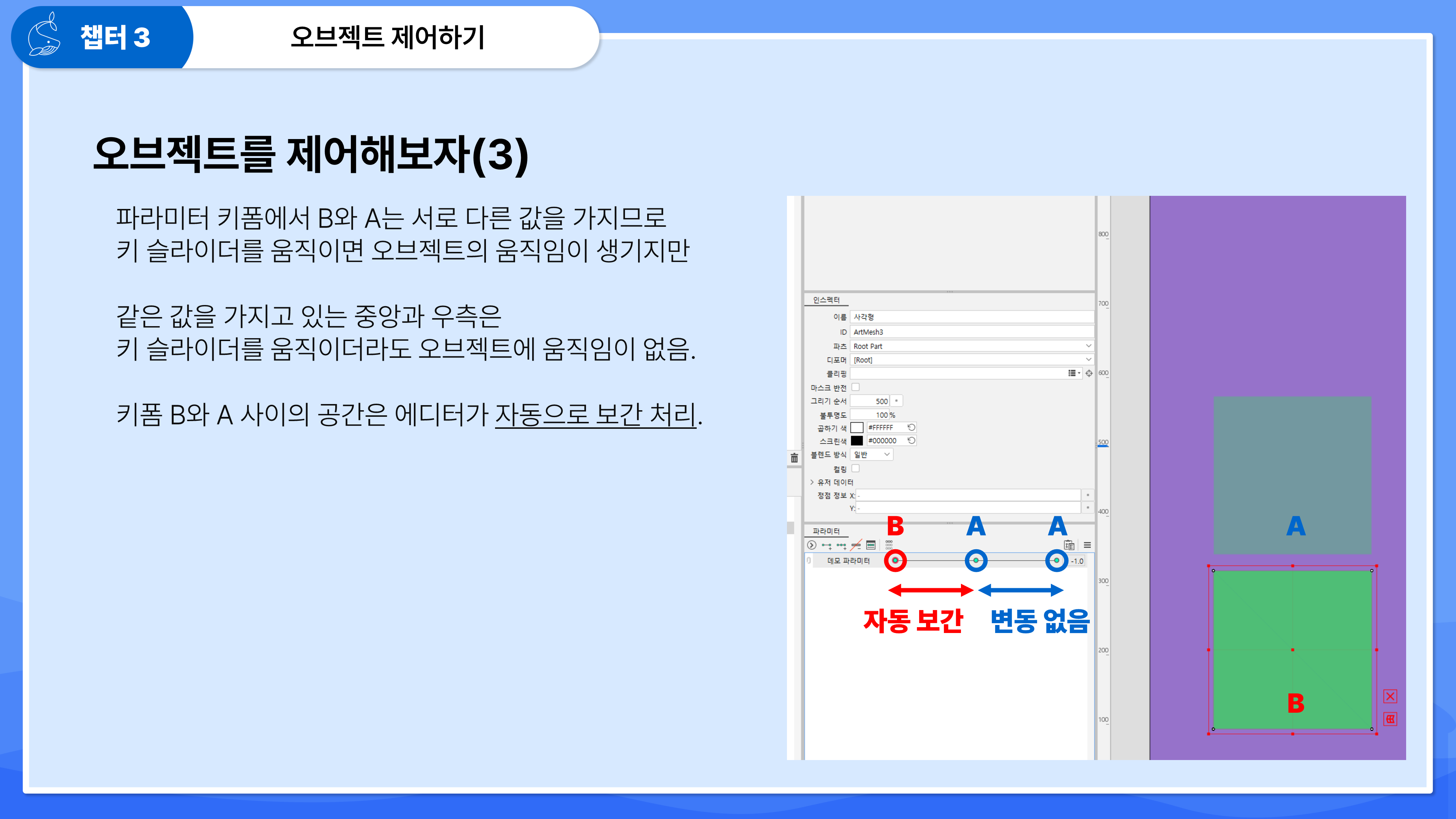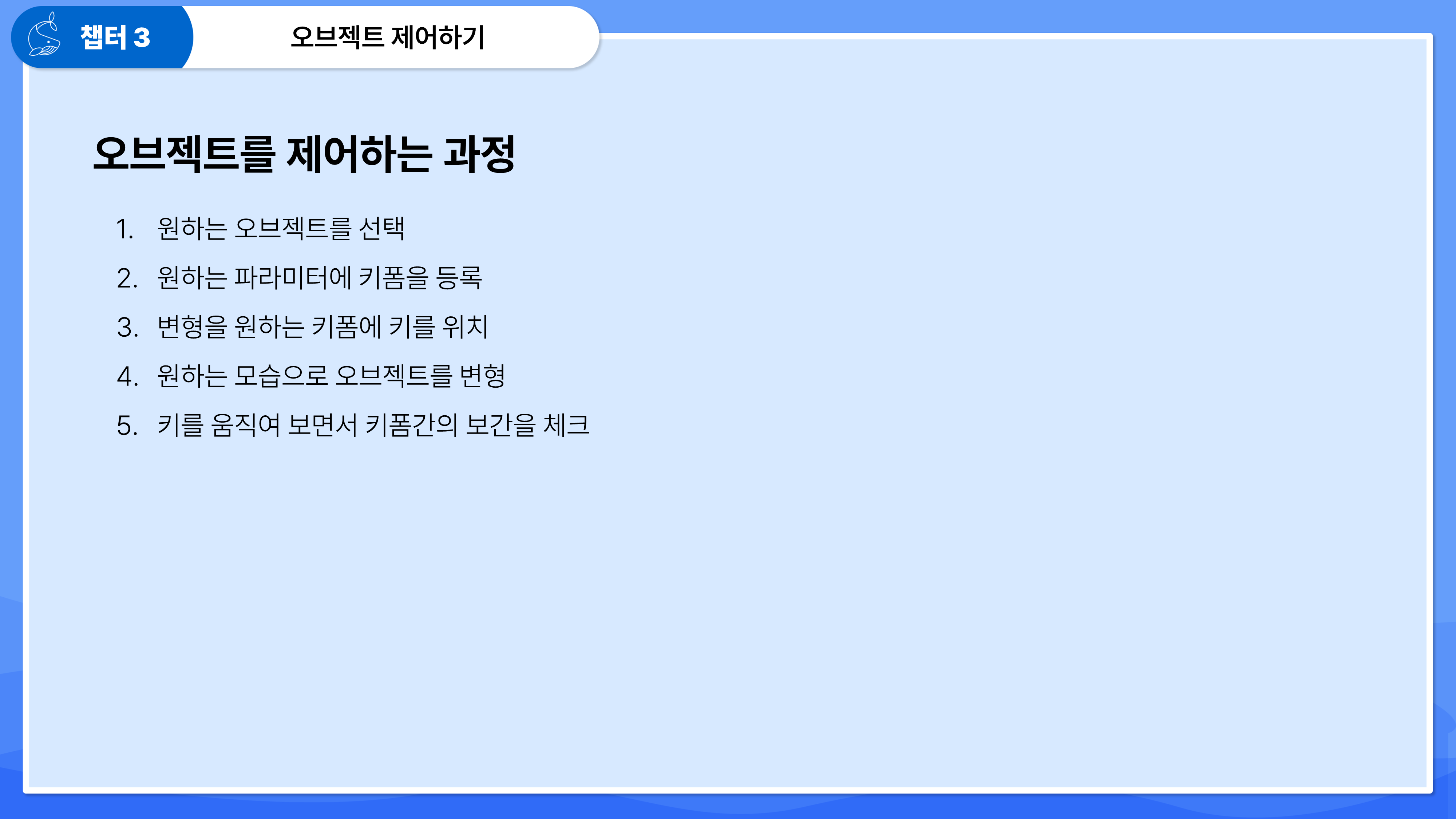 키폼 등록과 조작하는 방법을 알아보았으니 본격적으로 오브젝트를 제어해 보도록 하겠습니다.