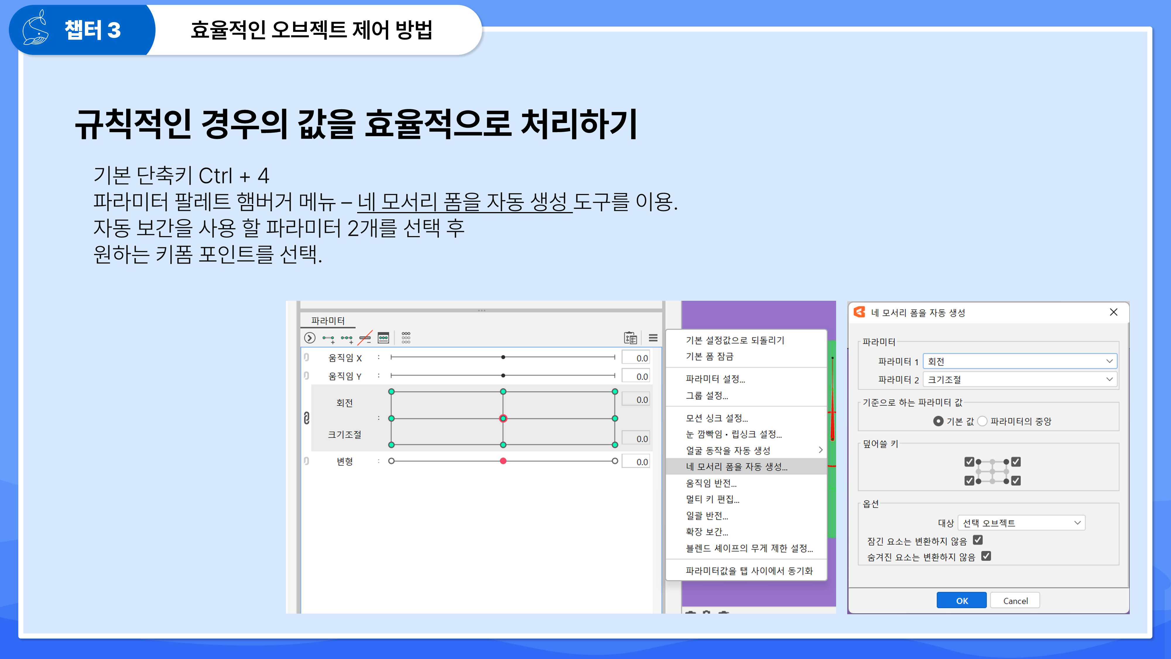 파라미터의 키폼과 관련한 추가적인 기능에 대해서 알아보도록 하겠습니다.