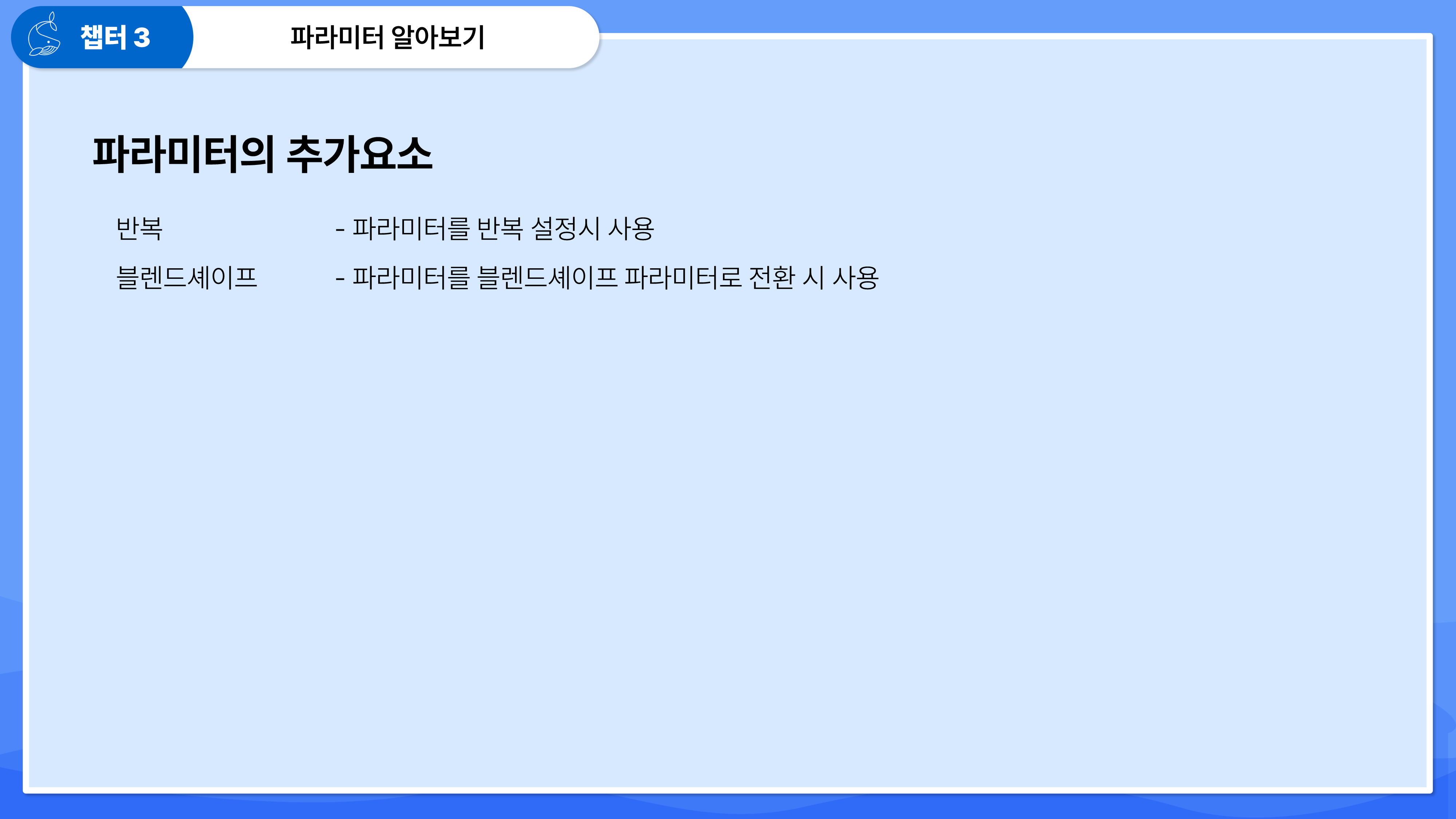 파라미터의 추가요소는 반복, 블렌드셰이프 가 있습니다.